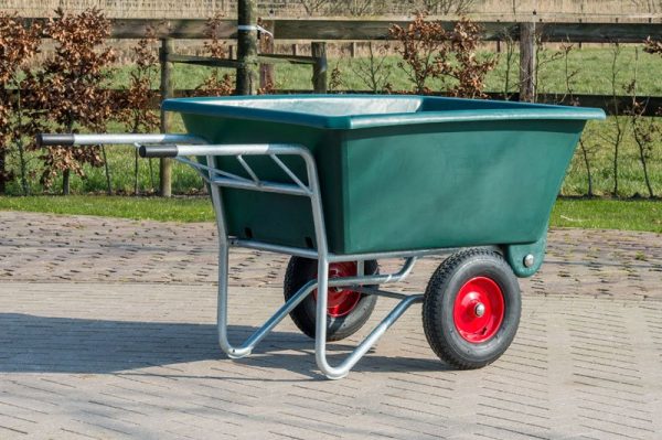 Met deze kruiwagen kunt u maar liefst 430 liter vervoeren. Ideaal als u op stal grote hoeveelheden mest, water of stro van a naar b moet brengen. De bak is gemaakt van polyethyleen en het frame is gegalvaniseerd. Hierdoor kan deze kruiwagen absoluut tegen een stootje.